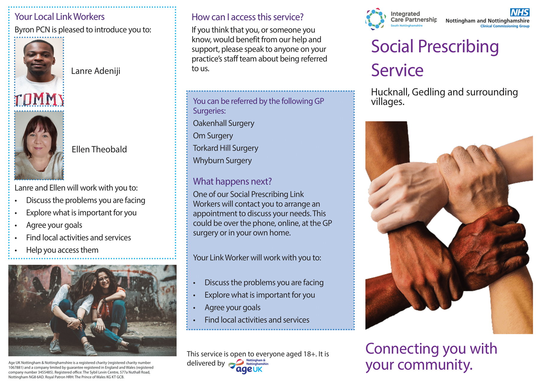 Social prescribing is a referral only service and if you are referred, a local Social Prescribing Link Worker will contact you. They will help you take control of your health and make changes, they might introduce you to a community group, a new activity or a local club, or they might help you access legal/social care/debt/housing advice.